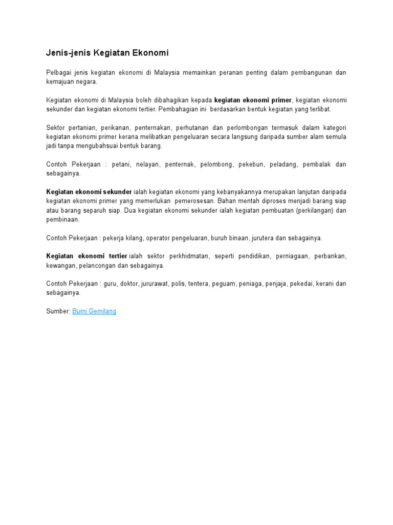 Related : Jenis Jenis Kegiatan Ekonomi / Pelbagai jenis kegiatan ekonomi di malaysia memainkan peranan penting dalam pembangunan dan kemajuan negara..