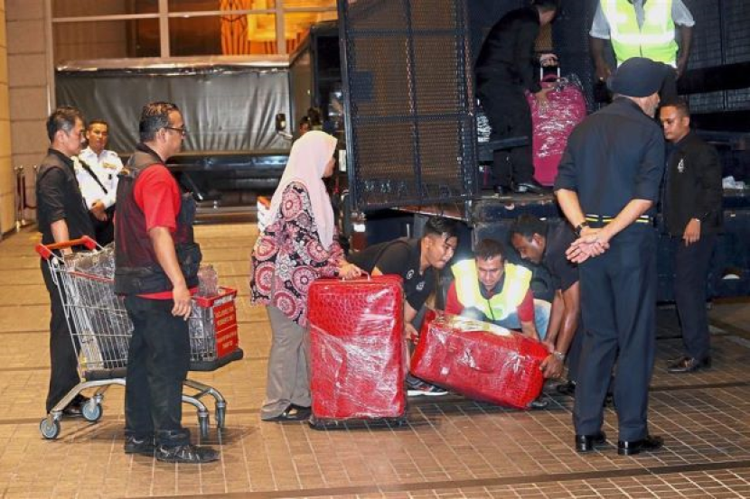 Terdapat 72 beg bagasi yang dipenuhi barangan termasuk barang kemas, barang berharga lain dan beg berisi wang tunai pelbagai denominasi, katanya kami telah merampas kesemua beg tersebut, kami tahu mereka mempunyai wang tunai, perhiasan dan beberapa nilai wang tunai yang saya tidak. Hal tersebut disampaikan pengacara najib di lokasi. Sedikitnya 12 polisi memasuki rumah mantan perdana menteri malaysia najib razak. Setelah menggeledah beberapa unit apartemen di kuala lumpur, terkait dengan penggeledahan di kediaman pribadi mantan pm najib razak, kepolisian malaysia 'menyita 72 koper berisi uang tunai, perhiasan, dan 284 kardus berisi tas mewah'. Polisi yang berasal dari departemen tindak pidana ekonomi bukit aman telah berada di rumah itu sejak pukul 1 siang waktu setempat.