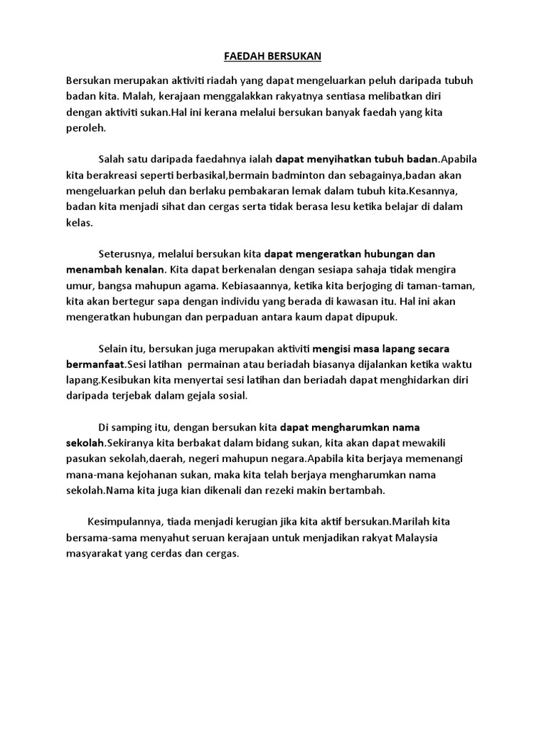 Karangan - Kepentingan Aktiviti Riadah from imgv2-1-f.scribdassets.com Riadah dan rekreasi kepentingan aktiviti riadah karangan pendek kepentingan aktiviti riadah karangan spm kepentingan aktiviti riadah sebagai. Seorang peniaga, kamaruddin hassan, 50 dari bukit setongkol, di sini yang kembali beriadah bersama keluarga selepas perintah kawalan pergerakan (pkp) berakhir, terkejut dengan kehadiran sekumpulan monyet di. Menurut shahizatul farha, selain membaca dan mewarna, anaknya juga tidak terkecuali daripada melakukan aktiviti riadah seperti berenang di kolam, berbasikal dan melakukan eksperimen ringkas. Vitamin ini sangat mustahak untuk tulang dan gigi, untuk pembuluh darah, dan. Faedah riadah dalam bahasa arab. Contoh karangan kebaikan aktiviti riadah. Apabila digerakkan, lemak dalam badan kita dapat dibakar. Nik muhammad lokhman bin hashim.