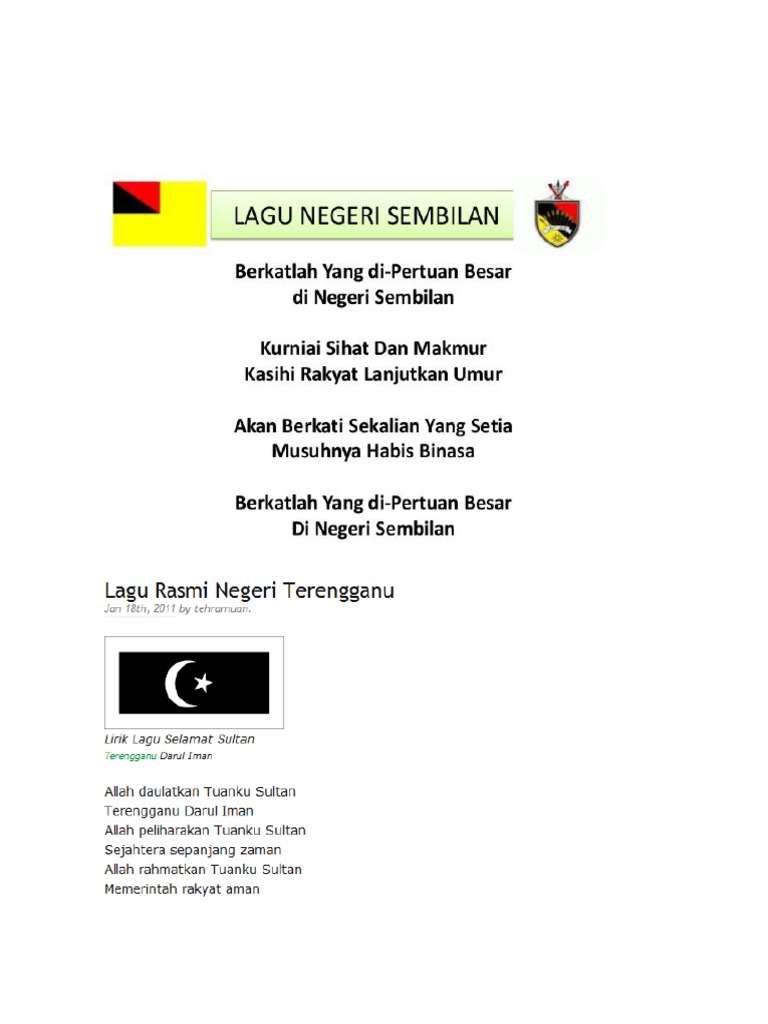Ia merupakan sesuatu lambang kepada negeri kami. Setiap rakyat di terengganu mesti menguasai lagu ini memandangkan ia merupakan lagu negeri terengganu. Selamat sultan adalah lagu kebangsaan atau lagu kebesaran negeri terengganu, salah satu. Lagu kebesaran negeri perak darul ridzuan allah lanjutkan usia sultan. Ada 20 gudang lagu negeri terengganu selamat sultan minus one terbaru, klik salah satu untuk download lagu mudah dan cepat.