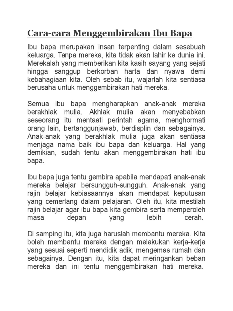 Bahasa Melayu Kertas 2 012 022 032 Penulisan Upsr Ppt Download from slideplayer.info Ibu bapa ialah orang yang memelihara kita sejak kecil sehingga kini. Dakwah, ibubapa, suku banjar abstract. Menunaikan solat bersama ibu bapa, berpuasa di bulan ramadan, menunjukkan cara. Adakah dengan ungkapan sahaja sudah menunjukkan kasih dan sayang kita kepada ibu dan ayah? Anak banggi snrla 1 year ago. Anak dan masyrakat turut dibincangkan. Setidaknya anak saya harus menjalani berapa tahun agar dia bebas bersyarat? Walau pun sudah bersuami, tanggung jawab untuk menghormati ibu bapa dengan cara patuh dan taat kepada perintah kedua mereka masih perlu dilakukan, namun wajib meletakkan suami pada.