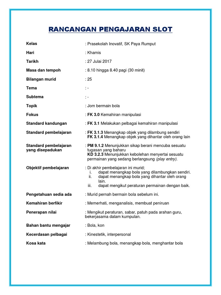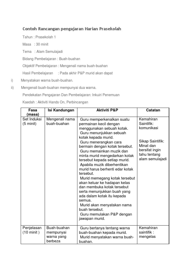 Rancangan pengajaran harian prasekolah minggu ke 6 daily lesson plan (rph) rph bahasa inggeris tahunan cute766 anggota badan. Tahun 5 bilangan murid : Rph (rancangan pengajaran harian) bahasa inggeris tahun 2. Dicatat oleh unknown at thursday, 15 november 2012. 24 jun documents similar to contoh rancangan pengajaran harian prasekolah.