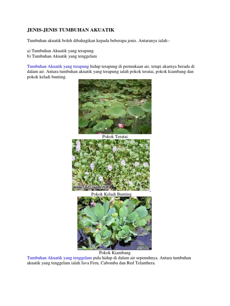 Jenis Tumbuhan Air from imgv2-2-f.scribdassets.com Jenis ikan ini tidak dapat berenang secepat ikan yang menggunakan tubuh. Paragraf adalah suatu kesatuan yang terdiri dari beberapa artinya, kalimat utama merupakan kalimat yang di dalamnya memuat ide pokok. Dalam kamus besar bahasa indonesia (kbbi), daulat adalah kekuasaan, pemerintahan. Dari berbagai banyaknya jenis hewan air dapat diklasifikasikan berdasarkan habitatnya, cara berkembangbiaknya, dan ciri ciri dari masing masing dalam hal ini sebelum mengulas berbagai jenis hewan yang hidup di air maka perlu untuk diketahui klasifikasi hewan berdasarkan jenis air sebagai. Jenis pokok yang bersesuaian untuk ditanam di dalam rumah adalah dari jenis yang boleh tahan berada di dalam persekitaran yang kurang cahaya, kurang air, tanah, baja dan sebagainya. Kali ni lima letop nak kongsikan 5 jenis pokok hidup yang sesuai ditanam di dalam rumah. Biaya ini menjadi elemen biaya konstruksi yang terbilang relatif besar. Siklus hidrologi ini dibagi menjadi 3 jenis, gais.